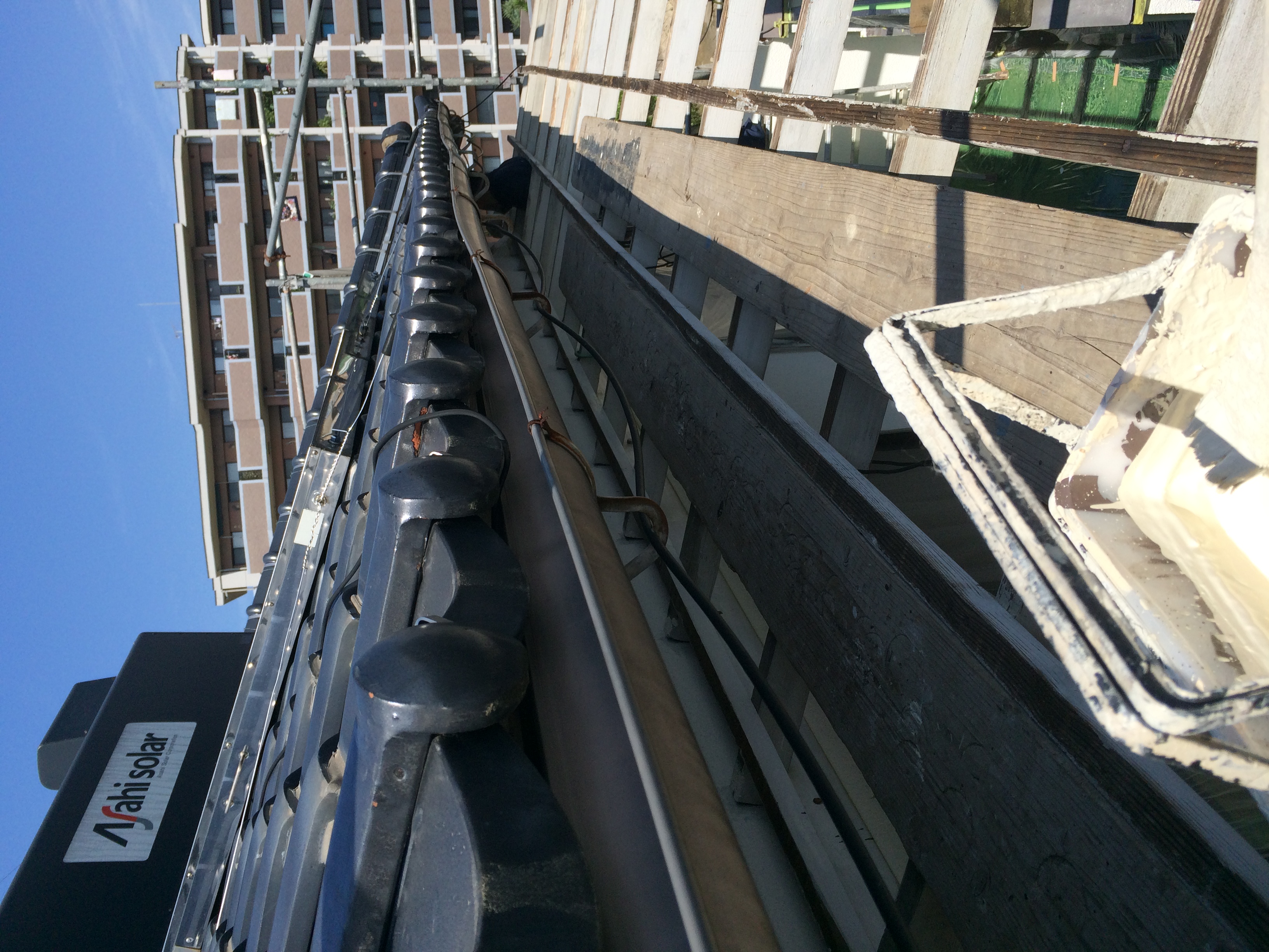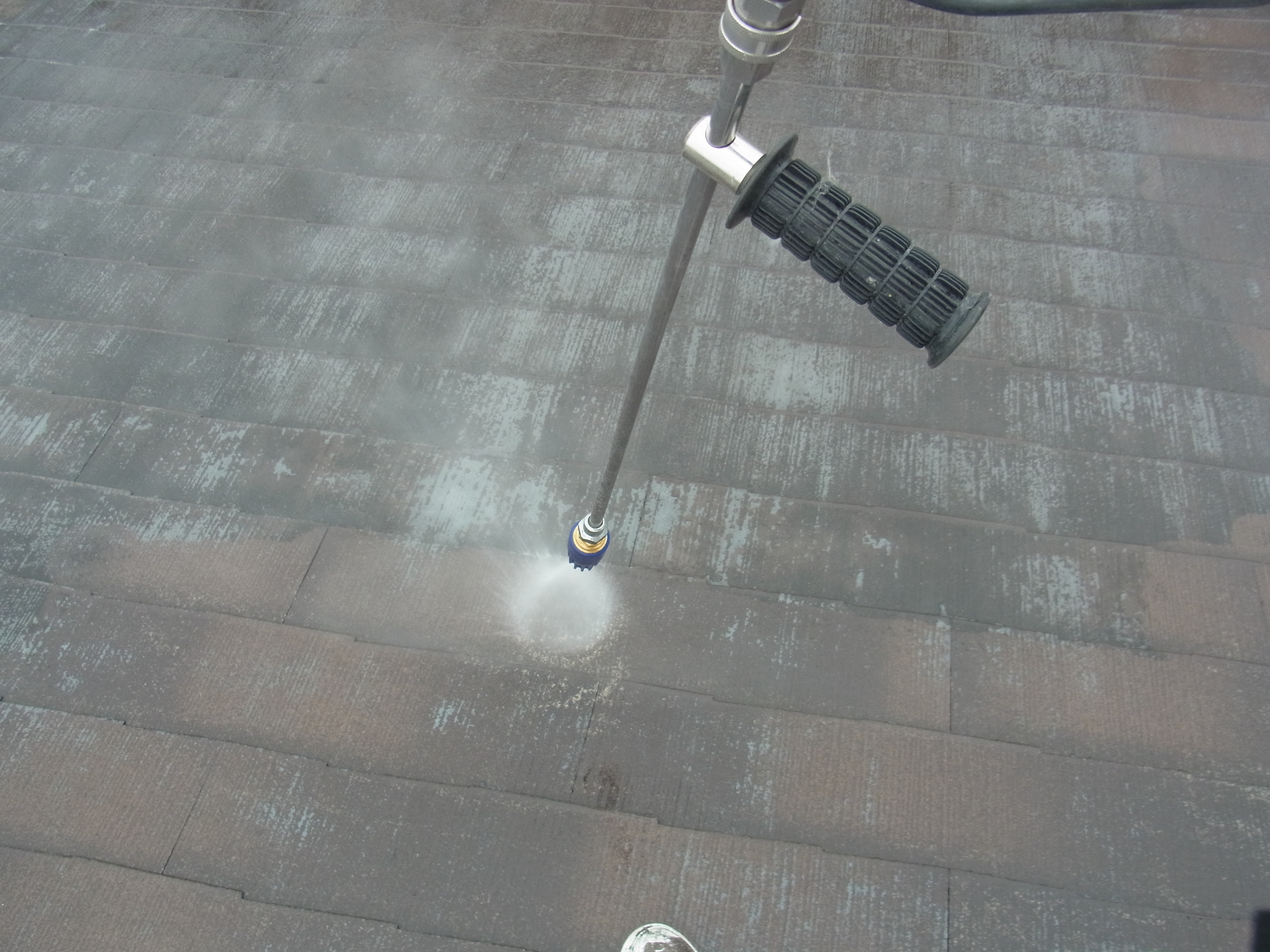 なんでも下地処理がとても大切です。高圧洗浄は丁寧に剥がれやすい旧塗膜や汚れ、コケなど落としていきます。