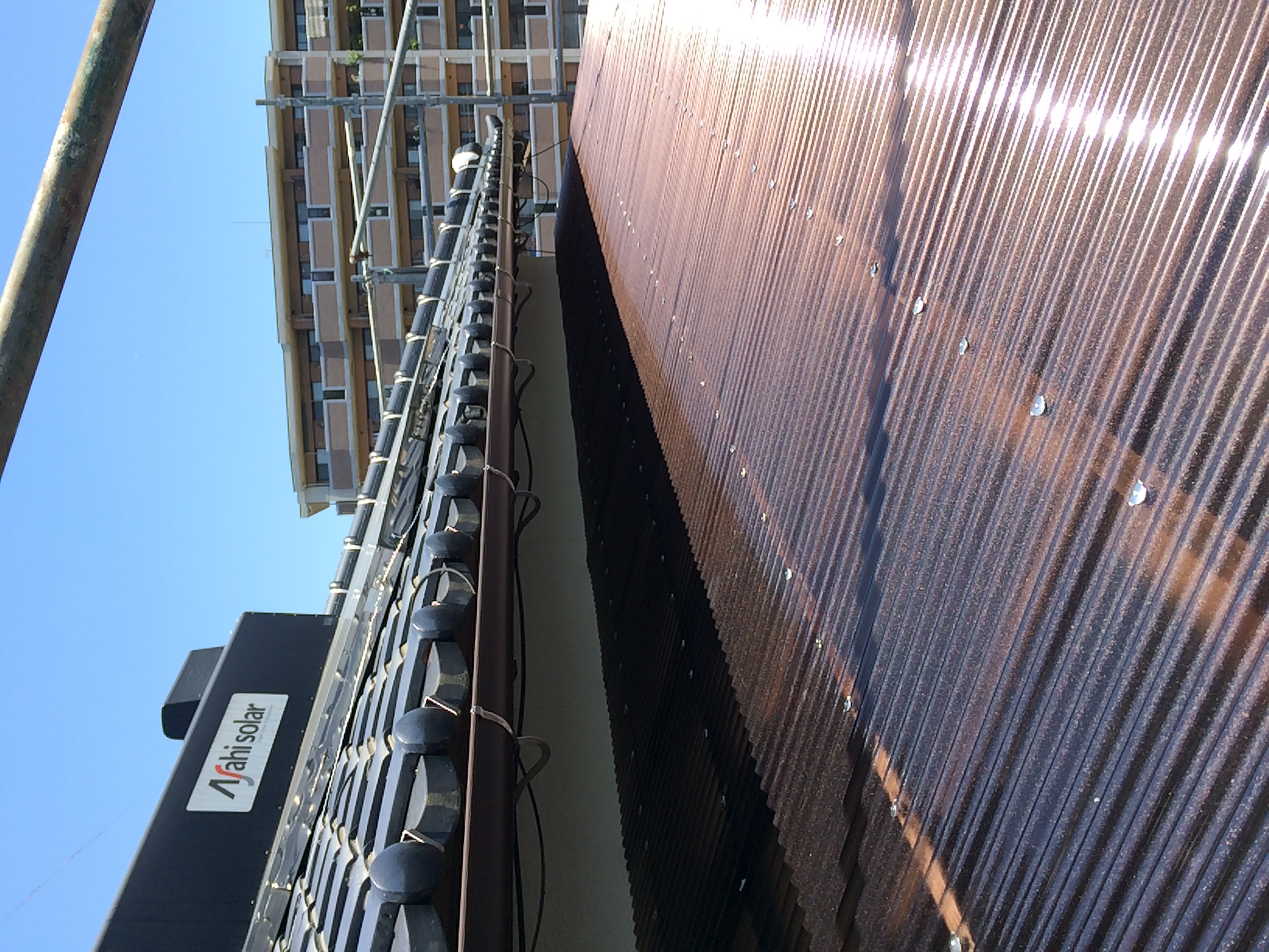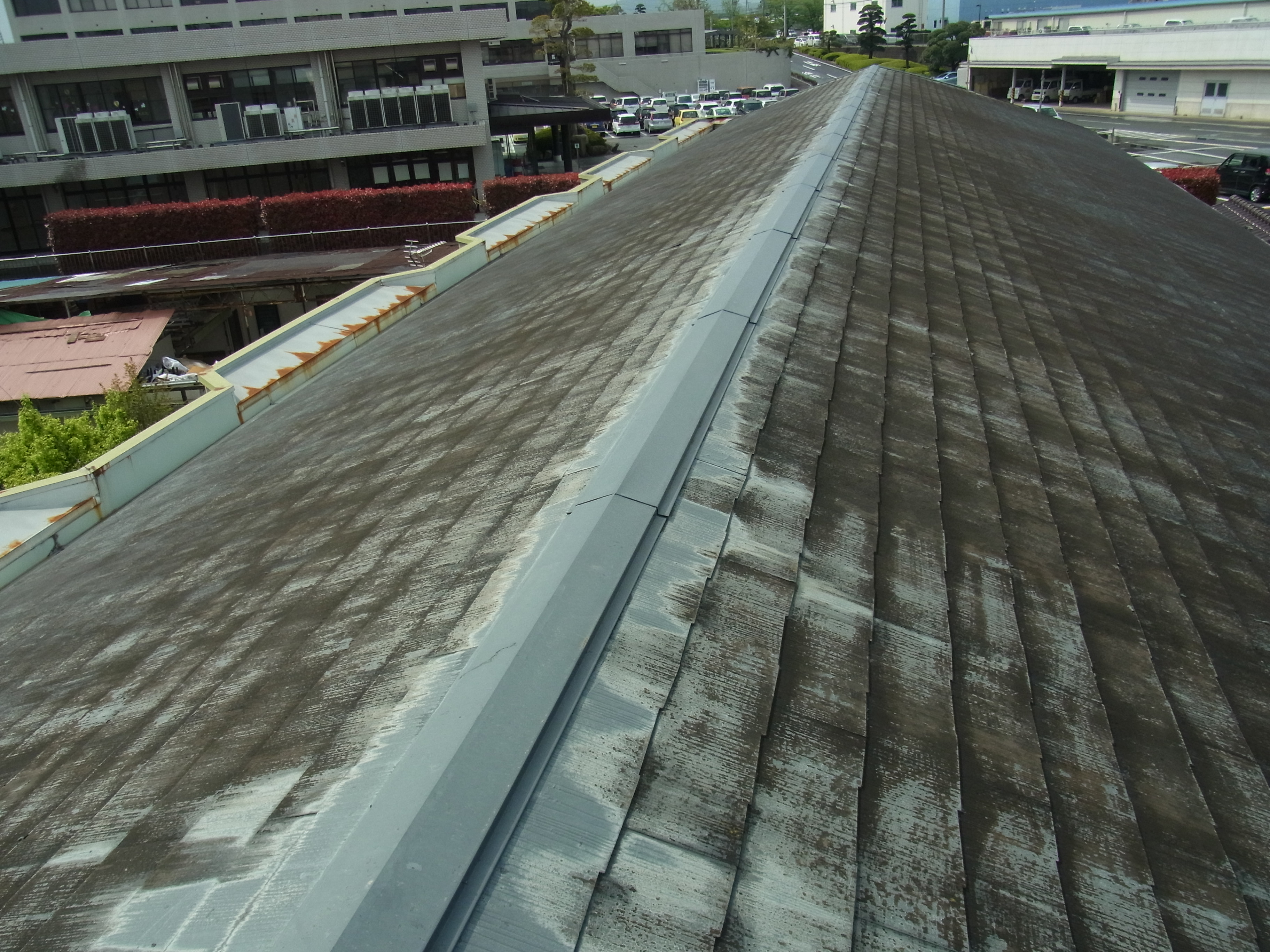 【作業内容】 高圧洗浄 → 棟板金などのビスの増し締め → 板金箇所の錆止め塗装 → 密着プライマー塗装2回→ 上塗り(ナノシリコン)2回塗り